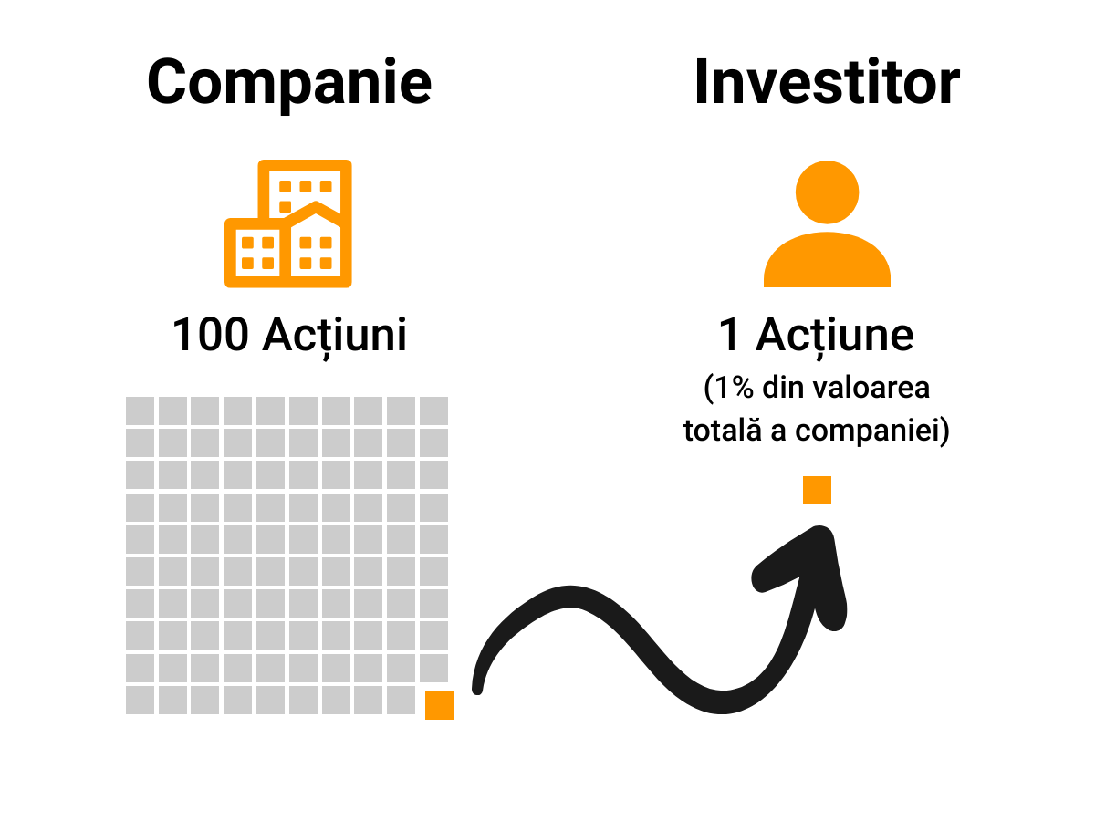 Dacă o companie valorează 100 de milioane de dolari și există 50 de milioane de acțiuni, atunci fiecare acțiune valoreaza 2 dolari.